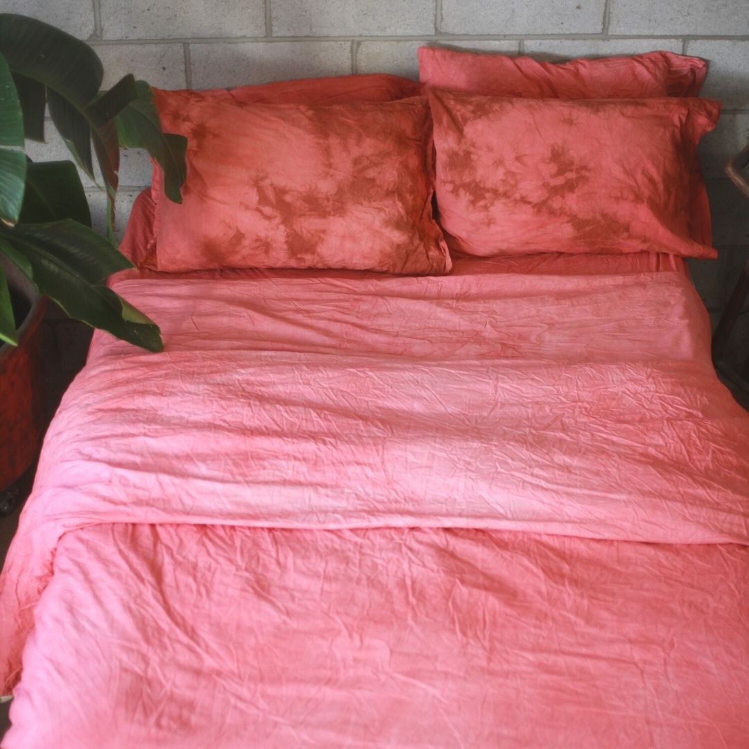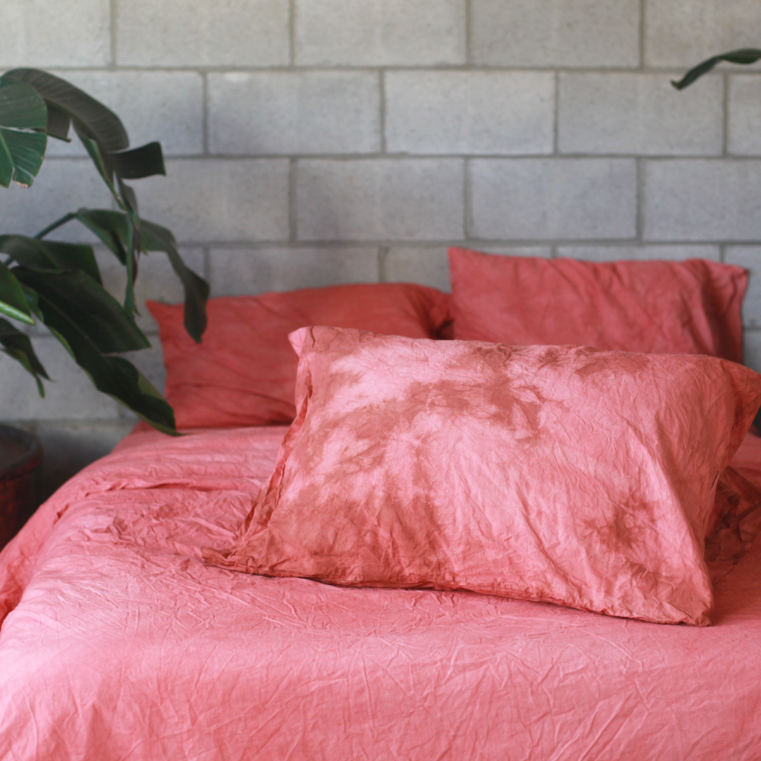 Add a powerful pop of pink to your bedroom with these natural tie-dye pillowcases.
