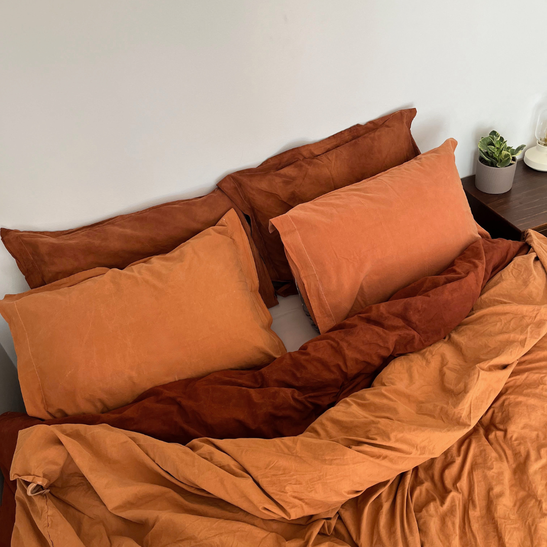 Bring comfort and rustic beauty to your bedroom with this 2-pack of Terracotta Pillowcases. Crafted from organic cotton, these pillowcases are dyed with plants to achieve a stunning rust hue. Soft, cooling, and naturally hypoallergenic, they're a great choice for those with allergies. Plus, they're made in the USA and are nontoxic, so you can sleep soundly.